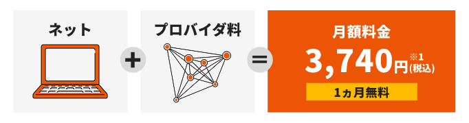 | 月額利用料金 プロバイダ料・機器レンタル料込み (内臓無線LAN月額利用料は除く) | 3,740円~※1 開通月無料 |