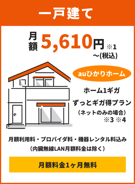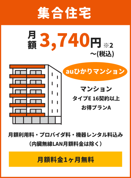 ※2 上記の料金はauひかりマンションタイプE16契約以上 お得プランAの場合の月額料金です。ネット+電話の場合は月額4,950円となります。