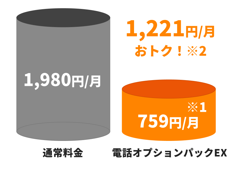 ※1 電話オプションパックEXの場合で、最大1,100円(税込)おトクです。